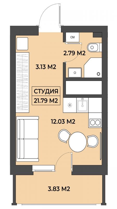 | Площадь общая | 21,79 |