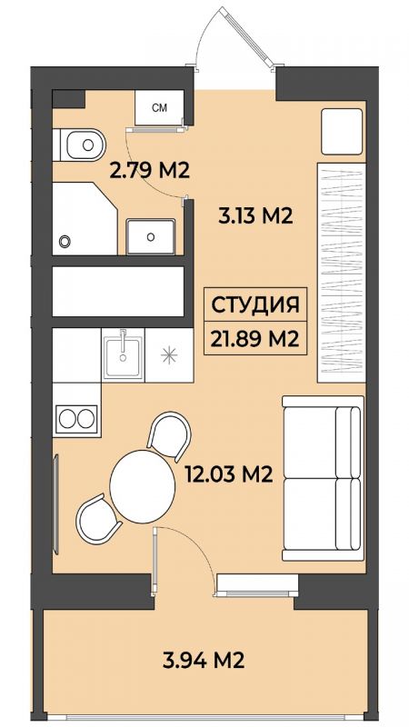 | Площадь общая | 21,89 |